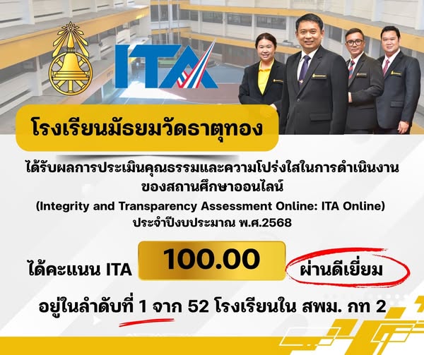 ได้รับผลการประเมินคุณธรรมและความโปร่งใสในการดำเนินงานของสถานศึกษาออนไลน์ (Integrity and Transparency Assessment Online: ITA Online) ประจำปีงบประมาณ พ.ศ.2568